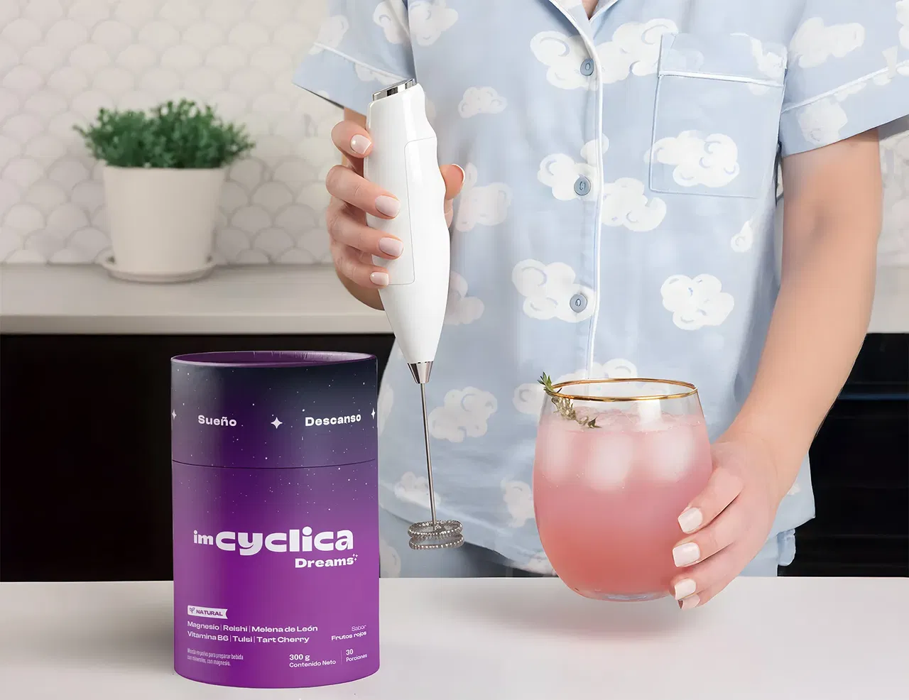 Hecho con ingredientes 100% naturales, nuestro Dreams es un delicioso polvo con sabor a frutos rojos diseñado para ser parte de tu nuevo ritual nocturno de autocuidado, vegano y libre de gluten, puedes mezclar, disfrutar y crear tu momento perfecto antes de dormir.